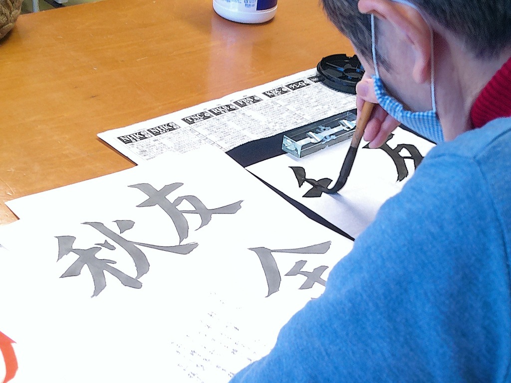 新年最初の書道教室では、楷書や小筆での書き方を教えて頂きました。皆さん、先生のお見本をしっかりと見ながら、筆を動かし書かれていました。先生に指導していただきながら、書道と向き合い集中する時間を皆さん楽しんでおられます。