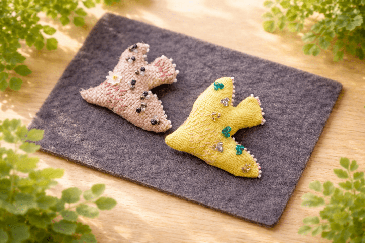 今回の刺しゅう教室は、可愛らしい小鳥にビーズと刺しゅうを刺し、ブローチにしました。皆さん、好みのビーズを選び、縫い付け、刺しゅうを施したりと楽しく作業されていました。途中、糸が絡まったりしましたが、先生の丁寧な指導・サポートのもと、素敵なブローチを完成することができました。